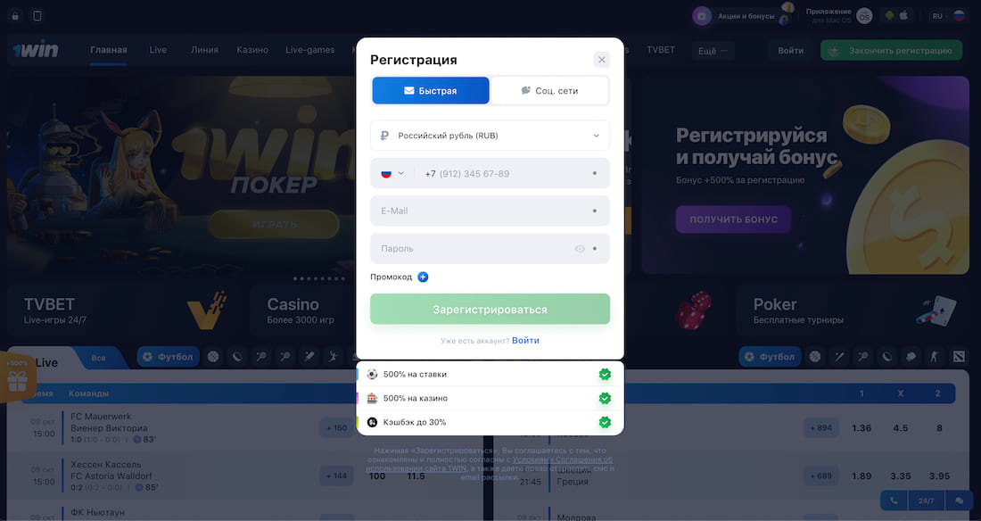 Чтобы стать полноправным участником 1вин, новый клиент должен перейти на главный веб-ресурс 1win.com, а если доступа к нему нет – использовать зеркало. Благодаря максимально понятному функционалу главного веб-ресурса, у новичков практически не возникает проблем с этой процедурой.